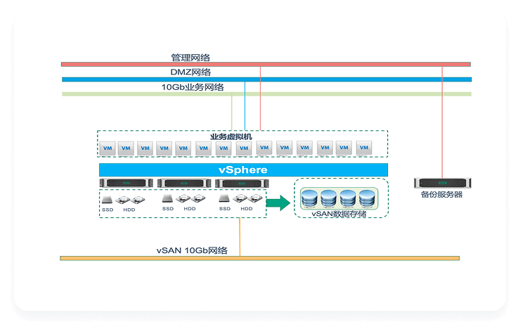 - A 3-node Dell server is used to run VMware Vsphere virtualization and deploy vSAN to host the company's core applications such as QAD, AD, DNS, WEB, and DB.