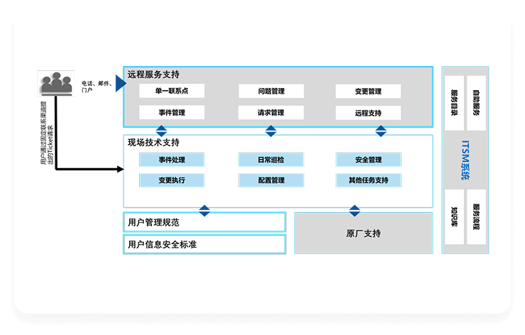 - The user management team is separated from daily fault support and plays a management role in process monitoring, optimization and improvement