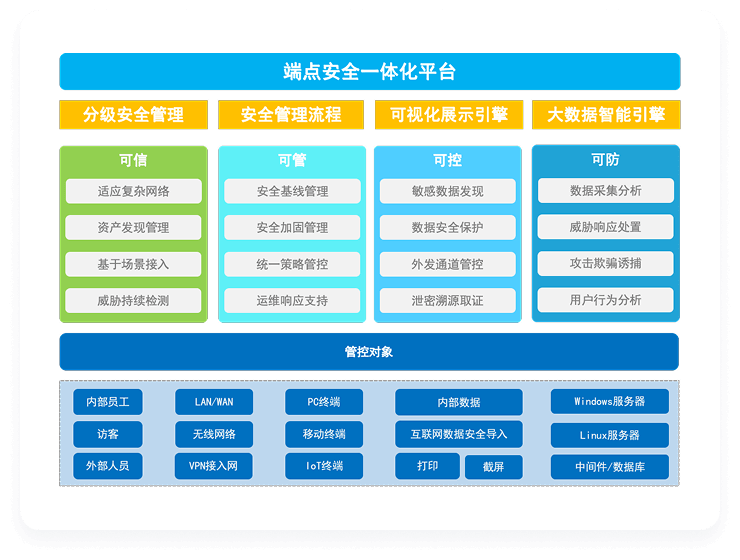 The limitations of traditional terminal management approaches lie in their inability to fully cover terminal types and network environments, resulting in a lack of unified management. This leads to isolated security systems, inefficient management and the risk of security gaps between security systems. Technology-oriented solutions, which focus solely on technical means without focusing on management outcomes, struggle to achieve the desired management results. Terminals are increasingly populated with clients, and in many cases, a single terminal may have more than five security systems installed. This slows down terminal operation, degrades the user experience, and forces enterprise security personnel to overwhelm with product operations and maintenance.