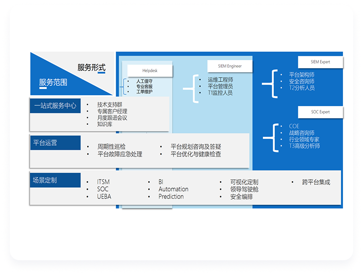 As a leading SIEM integrated solution provider in China, Yuchen Technology provides enterprises with comprehensive support plans including product consulting, troubleshooting, environmental inspection, and performance tuning, fully covering the SIEM product usage and service needs of enterprises of different sizes. Services include: